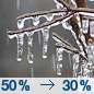 Temperature: 36°F Wind Speed: 5 mph Wind Direction: NE Forecast: A chance of freezing rain before 1pm. Cloudy, with a high near 36. Chance of precipitation is 50%. Little or no ice accumulation expected. |