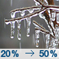 Temperature: 31°F Wind Speed: 3 to 7 mph Wind Direction: E Forecast: A chance of freezing rain after 7am. Mostly cloudy, with a high near 31. Chance of precipitation is 50%. |