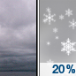 Temperature: 21°F Wind Speed: 12 mph Wind Direction: WSW Forecast: A slight chance of rain before 7pm. Mostly cloudy, with a low around 21. |