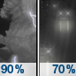 Temperature: 47°F Wind Speed: 14 to 18 mph Wind Direction: S Forecast: Showers and thunderstorms before 10pm, then rain likely. Mostly cloudy. Low around 47, with temperatures rising to around 49 overnight. South wind 14 to 18 mph, with gusts as high as 31 mph. Chance of precipitation is 90%. New rainfall amounts between a quarter and half of an inch possible. |