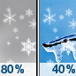 Temperature: 15°F Wind Speed: 6 mph Wind Direction: E Forecast: Snow. Cloudy, with a low around 15. Chance of precipitation is 80%. New snow accumulation of around one inch possible. |