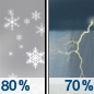 Temperature: 46°F Wind Speed: 7 to 17 mph Wind Direction: SSW Forecast: Showers and thunderstorms likely before 7am, then rain between 7am and 10am, then patchy fog and rain and snow likely between 10am and 11am, then showers and thunderstorms likely between 11am and 4pm, then a chance of rain. Mostly cloudy. High near 46, with temperatures falling to around 44 in the afternoon. South southwest wind 7 to 17 mph, with gusts as high as 22 mph. Chance of precipitation is 80%. New rainfall amounts less than a tenth of an inch possible. |