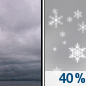 Temperature: 26°F Wind Speed: 5 to 10 mph Wind Direction: N Forecast: A slight chance of snow showers. Cloudy, with a high near 26. |