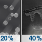 Temperature: 15°F Wind Speed: 15 to 20 mph Wind Direction: W Forecast: Snow showers likely. Mostly cloudy, with a low around 15. Chance of precipitation is 70%. |