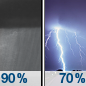 Temperature: 65°F Wind Speed: 10 to 20 mph Wind Direction: S Forecast: Showers and thunderstorms. Mostly cloudy, with a high near 65. South wind 10 to 20 mph, with gusts as high as 25 mph. Chance of precipitation is 80%. New rainfall amounts between a quarter and half of an inch possible. |