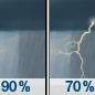 Temperature: 44°F Wind Speed: 8 mph Wind Direction: SSW Forecast: Showers and thunderstorms likely. Mostly cloudy, with a low around 44. South southwest wind around 8 mph. Chance of precipitation is 70%. New rainfall amounts less than a tenth of an inch possible. |