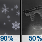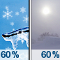 Temperature: 31°F Wind Speed: 15 to 25 mph Wind Direction: W Forecast: Snow likely and a slight chance of freezing rain before noon, then snow likely and patchy blowing snow. Mostly cloudy. High near 31, with temperatures falling to around 8 in the afternoon. West wind 15 to 25 mph, with gusts as high as 45 mph. Chance of precipitation is 60%. New snow accumulation of less than one inch possible. |