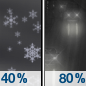 Temperature: 33°F Wind Speed: 6 mph Wind Direction: S Forecast: A chance of snow between 7pm and 10pm, then rain. Cloudy, with a low around 33. South wind around 6 mph. Chance of precipitation is 80%. Little or no snow accumulation expected. |