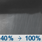 Temperature: 39°F Wind Speed: 6 to 21 mph Wind Direction: S Forecast: Rain showers after 9pm. Cloudy. Low around 39, with temperatures rising to around 54 overnight. South wind 6 to 21 mph, with gusts as high as 36 mph. Chance of precipitation is 100%. New rainfall amounts between a half and three quarters of an inch possible. |