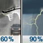 Temperature: 38°F Wind Speed: 3 to 8 mph Wind Direction: S Forecast: Rain and a slight chance of thunderstorms. Cloudy, with a low around 38. Chance of precipitation is 90%. New rainfall amounts between a tenth and quarter of an inch possible. |