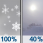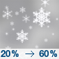 Temperature: 35°F Wind Speed: 8 to 12 mph Wind Direction: WSW Forecast: A chance of snow. Mostly cloudy, with a high near 35. New snow accumulation of less than one inch possible. |