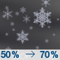 Temperature: 37°F Wind Speed: 8 mph Wind Direction: S Forecast: Snow likely. Mostly cloudy, with a high near 37. Chance of precipitation is 70%. New snow accumulation of less than half an inch possible. |