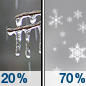 Temperature: 36°F Wind Speed: 12 to 17 mph Wind Direction: S Forecast: A slight chance of freezing rain before noon, then rain likely between noon and 3pm, then rain and snow likely. Mostly cloudy. High near 36, with temperatures falling to around 34 in the afternoon. South wind 12 to 17 mph, with gusts as high as 35 mph. Chance of precipitation is 70%. New rainfall amounts between a tenth and quarter of an inch possible. |