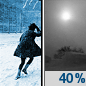 Temperature: -4°F Wind Speed: 7 to 21 mph Wind Direction: SE Forecast: A chance of snow between midnight and 4am, then a chance of snow and patchy blowing snow. Mostly cloudy, with a low around -4. Southeast wind 7 to 21 mph, with gusts as high as 32 mph. Chance of precipitation is 40%. New snow accumulation of less than half an inch possible. |