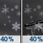 Temperature: 40°F Wind Speed: 5 to 10 mph Wind Direction: SE Forecast: A slight chance of freezing rain before 7am, then a slight chance of rain showers. Cloudy, with a high near 40. |