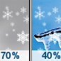 Temperature: 33°F Wind Speed: 8 mph Wind Direction: E Forecast: Snow likely before 1pm, then a slight chance of snow and a slight chance of freezing rain. Mostly cloudy, with a high near 33. Chance of precipitation is 70%. New snow accumulation of less than half an inch possible. |