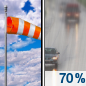 Temperature: 49°F Wind Speed: 16 to 21 mph Wind Direction: S Forecast: Rain likely after noon. Partly sunny, with a high near 49. South wind 16 to 21 mph, with gusts as high as 40 mph. Chance of precipitation is 70%. New rainfall amounts less than a tenth of an inch possible. |