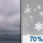 Temperature: 28°F Wind Speed: 2 to 6 mph Wind Direction: E Forecast: Snow showers likely after 1pm. Cloudy, with a high near 28. Chance of precipitation is 70%. New snow accumulation of 1 to 3 inches possible. |