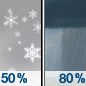 Temperature: 40°F Wind Speed: 3 to 7 mph Wind Direction: S Forecast: A slight chance of snow before 7am, then rain showers. Cloudy, with a high near 40. Chance of precipitation is 80%. |