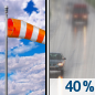 Temperature: 39°F Wind Speed: 9 to 21 mph Wind Direction: S Forecast: A chance of rain after 1pm. Mostly cloudy, with a high near 39. South wind 9 to 21 mph, with gusts as high as 32 mph. Chance of precipitation is 40%. |