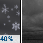 Forecast: Snow showers likely after 7pm. Mostly cloudy, with a low around 23. Chance of precipitation is 60%.