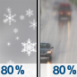 Temperature: 34°F Wind Speed: 5 mph Wind Direction: NE Forecast: Snow and freezing rain. Cloudy, with a high near 34. Chance of precipitation is 80%. |