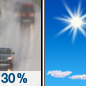 Temperature: 55°F Wind Speed: 5 to 9 mph Wind Direction: NW Forecast: A chance of rain before 7am. Sunny, with a high near 55. Chance of precipitation is 30%. |