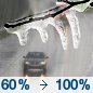 Temperature: 38°F Wind Speed: 8 to 14 mph Wind Direction: SE Forecast: Rain and freezing rain likely after 7am. Cloudy, with a high near 38. Chance of precipitation is 100%. Little or no ice accumulation expected. |