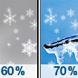 Temperature: 36°F Wind Speed: 10 to 25 mph Wind Direction: NW Forecast: Snow likely before noon, then snow likely and a slight chance of freezing rain between noon and 1pm, then snow likely and areas of blowing snow between 1pm and 4pm, then areas of blowing snow and a chance of snow. Cloudy. High near 36, with temperatures falling to around 7 in the afternoon. Northwest wind 10 to 25 mph, with gusts as high as 40 mph. Chance of precipitation is 70%. New snow accumulation of 1 to 2 inches possible. |