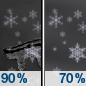 Temperature: 39°F Wind Speed: 5 mph Wind Direction: W Forecast: A chance of snow before 1pm, then a chance of rain and snow. Mostly cloudy, with a high near 39. |