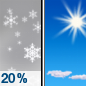 Temperature: 47°F Wind Speed: 5 mph Wind Direction: N Forecast: A slight chance of snow showers before 7am. Sunny, with a high near 47. Chance of precipitation is 20%. |