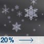 Temperature: 29°F Wind Speed: 2 to 17 mph Wind Direction: W Forecast: A slight chance of snow. Mostly cloudy, with a low around 29. West wind 2 to 17 mph, with gusts as high as 30 mph. Chance of precipitation is 20%. |