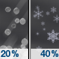 Temperature: 16°F Wind Speed: 5 to 15 mph Wind Direction: SSW Forecast: A slight chance of snow before 8pm, then a slight chance of sleet between 8pm and 9pm, then a chance of snow. Mostly cloudy. Low around 16, with temperatures rising to around 27 overnight. South southwest wind 5 to 15 mph. Chance of precipitation is 40%. New snow accumulation of less than half an inch possible. |