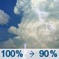 Temperature: 71°F Wind Speed: 10 to 15 mph Wind Direction: SSW Forecast: Showers and thunderstorms. Mostly cloudy, with a high near 71. South southwest wind 10 to 15 mph, with gusts as high as 25 mph. Chance of precipitation is 100%. |