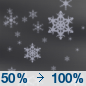 Temperature: 33°F Wind Speed: 8 to 13 mph Wind Direction: SW Forecast: Snow likely. Mostly cloudy, with a high near 33. Chance of precipitation is 60%. New snow accumulation of around one inch possible. |