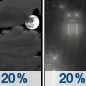 Temperature: 33°F Wind Speed: 2 to 6 mph Wind Direction: SE Forecast: A slight chance of rain after 4am. Mostly cloudy, with a low around 33. Chance of precipitation is 20%. |
