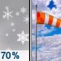 Temperature: 34°F Wind Speed: 8 mph Wind Direction: NW Forecast: A chance of snow after 7am. Mostly cloudy, with a high near 34. Chance of precipitation is 30%. |