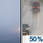Temperature: 42°F Wind Speed: 2 mph Wind Direction: NE Forecast: A chance of rain. Mostly cloudy, with a high near 42. Chance of precipitation is 50%. |