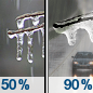Temperature: 29°F Wind Speed: 3 to 10 mph Wind Direction: S Forecast: Freezing rain and rain. Cloudy, with a low around 29. Chance of precipitation is 90%. New ice accumulation of less than half an inch possible. |
