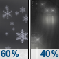 Temperature: 35°F Wind Speed: 5 to 8 mph Wind Direction: S Forecast: Snow likely after 7am. Mostly cloudy, with a high near 35. South wind 5 to 8 mph, with gusts as high as 18 mph. Chance of precipitation is 60%. New snow accumulation of less than half an inch possible. |