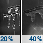Temperature: 27°F Wind Speed: 6 mph Wind Direction: SE Forecast: A slight chance of freezing rain between 7pm and 1am, then a chance of rain showers. Mostly cloudy, with a low around 27. Chance of precipitation is 40%. |