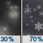 Temperature: 13°F Wind Speed: 5 to 10 mph Wind Direction: S Forecast: A slight chance of snow before midnight. Mostly cloudy, with a low around 13. South wind 5 to 10 mph. Chance of precipitation is 20%. |