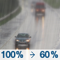 Temperature: 52°F Wind Speed: 15 to 20 mph Wind Direction: SW Forecast: Rain before 1pm. Partly sunny, with a high near 52. Chance of precipitation is 100%. |