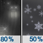 Temperature: 26°F Wind Speed: 3 to 7 mph Wind Direction: W Forecast: Rain before 1am, then a chance of rain and snow between 1am and 4am, then a chance of rain and snow. Mostly cloudy, with a low around 26. West wind 3 to 7 mph. Chance of precipitation is 80%. New rainfall amounts between a tenth and quarter of an inch possible. |