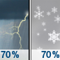 Temperature: 48°F Wind Speed: 6 to 15 mph Wind Direction: SSW Forecast: Rain likely before 11am, then showers and thunderstorms likely between 11am and 2pm, then a slight chance of thunderstorms and rain and snow showers likely between 2pm and 5pm, then a chance of rain and snow. Mostly cloudy, with a high near 48. |