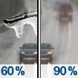 Temperature: 38°F Wind Speed: 3 to 8 mph Wind Direction: W Forecast: Rain. Cloudy, with a low around 38. Chance of precipitation is 90%. New rainfall amounts between a tenth and quarter of an inch possible. |