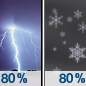 Temperature: 27°F Wind Speed: 9 to 16 mph Wind Direction: SW Forecast: Rain and a slight chance of thunderstorms before 1am, then rain and snow likely. Cloudy, with a low around 27. Chance of precipitation is 80%. |