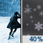 Temperature: 5°F Wind Speed: 2 mph Wind Direction: SW Forecast: A chance of snow showers after 1am. Mostly cloudy, with a low around 5. Southwest wind around 2 mph. Chance of precipitation is 40%. |