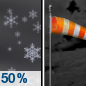 Temperature: 33°F Wind Speed: 23 mph Wind Direction: W Forecast: A chance of snow. Cloudy, with a high near 33. Chance of precipitation is 50%. New snow accumulation of less than one inch possible. |