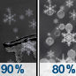 Temperature: 35°F Wind Speed: 14 to 21 mph Wind Direction: W Forecast: Rain and snow before 7am, then rain and snow likely. Mostly cloudy, with a high near 35. Chance of precipitation is 80%. |